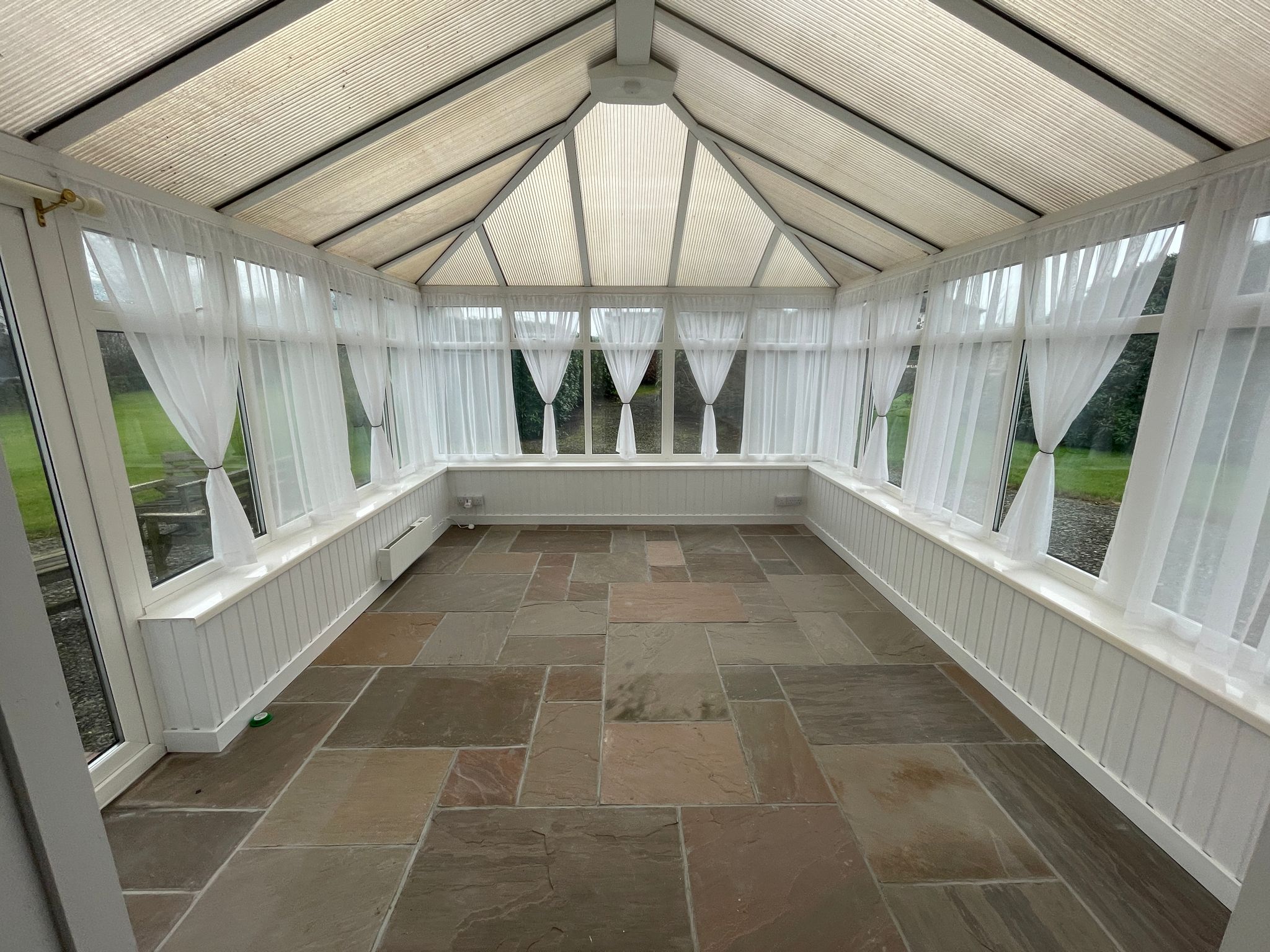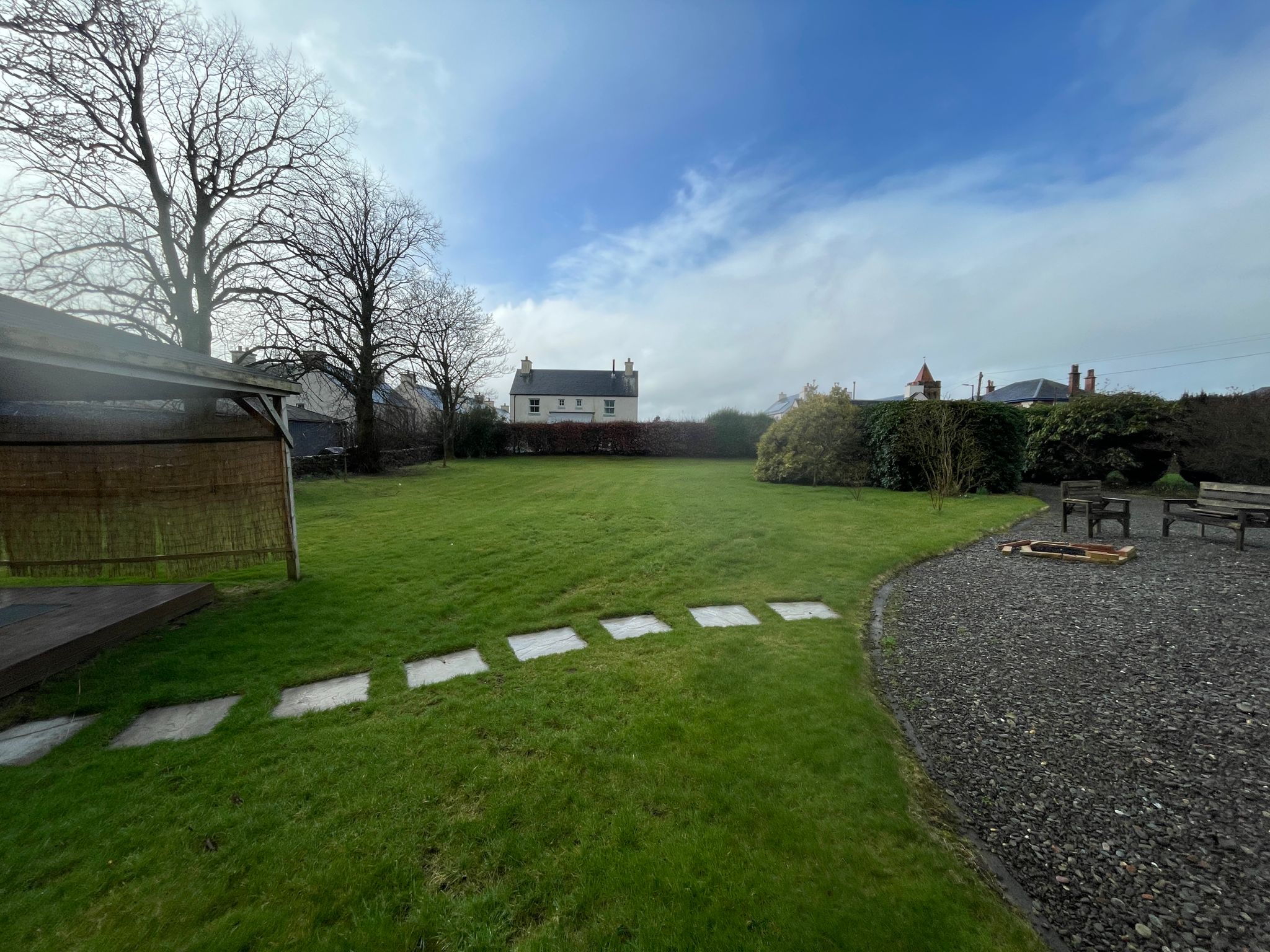 Outside is a large garden, garage and outbuilding.